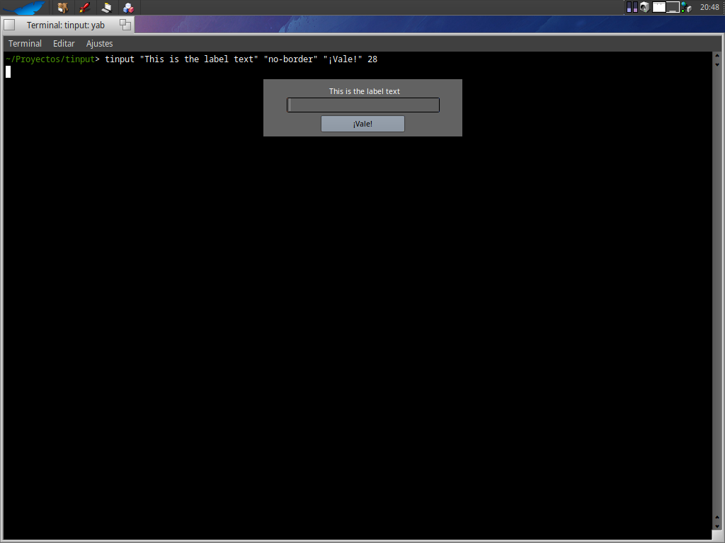 Me quedaba algo de pena no haber finalizado el script en condiciones y, para mi sorpresa y tras algún rato buscando en Internet, el día 9 de octubre encuentro (por total sorpresa) el script en el foro de YAB y me dedico a arreglar algunas cositas dejando en el ToDO establecer el título del botón y también determinar el tipo de ventana (Modal, resizable, etc.) pero existe desde 2016 YOSHI, que precisamente crea interfaces con YAB desde un script de BASH de forma mucho más completa puesto que podemos crear una interfaz de forma fácil, resumiendo un script de YAB de 100 líneas aproximadamente en uno de BASH de unas 20. Y no sólo crea una caja de texto; YOSHI puede crear checkboxes, listboxes, pestañas, menús, separadores, cargar imágenes, iconos, etc. Así que ya con lo que me falta por publicar, lo dejo lo más finalizado posible y empezar a usar YOSHI en mis pruebas.