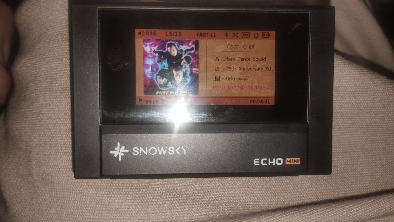 Foto de mi mp3. En este momemto suena Good Grief, de Urban Dance Squad, de la Banda Sonora de la película Hackers de 1995.