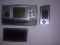 Primero parece que a alguien de Tiger Electronics se le olvidó el significado de la palabra portátil, mide XX de alto por XX de largo, aunque para que os sea más fácil asimilar estas proporciones gigantescas os la compararé con mi DS Lite y mi GameBoy Micro.