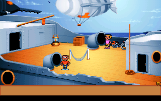 Creado por Coktel Vision (Creadores de mi aventura favorita del mundo, INCA 2, que reseñaré en algún momento futuro) y de los famosos Gobliiins, de hecho este juego promocional funciona con el motor de Gobliiins. En él se nos muestra un barco que está siendo atacado por unos mounstros voladores y dos niños que, por alguna razón, tienen que rescatarlo a base de puzles sencillotes y resultones.