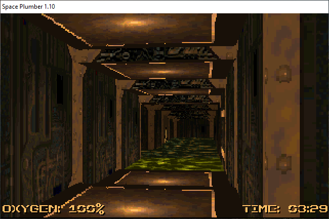 Space Plumber usa un motor Raycast (Como WOLF3D) y hace algo maravilloso con él, le da efecto "sumergido + contador de oxígeno" y convierte los mapas en laberintos en los que no hay que eliminar enemigos para llegar al punto de salida, porque no hay salida, sólo bombas de extracción y consolas que hay que usar para que el nivel del agua no nos ahogue, todo esto lo convierte en un estresante juego de laberintos y puzles donde la memoria juega un papel importante y que encima es duradero, ya que tiene 30 niveles y rejugable, ya que tiene un creador aleatorio de niveles.