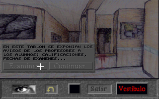 Una aventura gráfica que me ha mostrado el amigo Wave y que me ha gustado bastante. Publicada por la revista OK PC nº 53 en el año 1995 Terror en el instituto tiene unos bellos fondos dibujados a mano y escaneados y unos puzles bastante complejos.