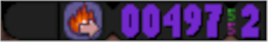 Como se ve en la imagen: Tengo la bola de fuego, 497 puntos, 5 bombas totales con un alcance de 5 espacios y 2 vidas.