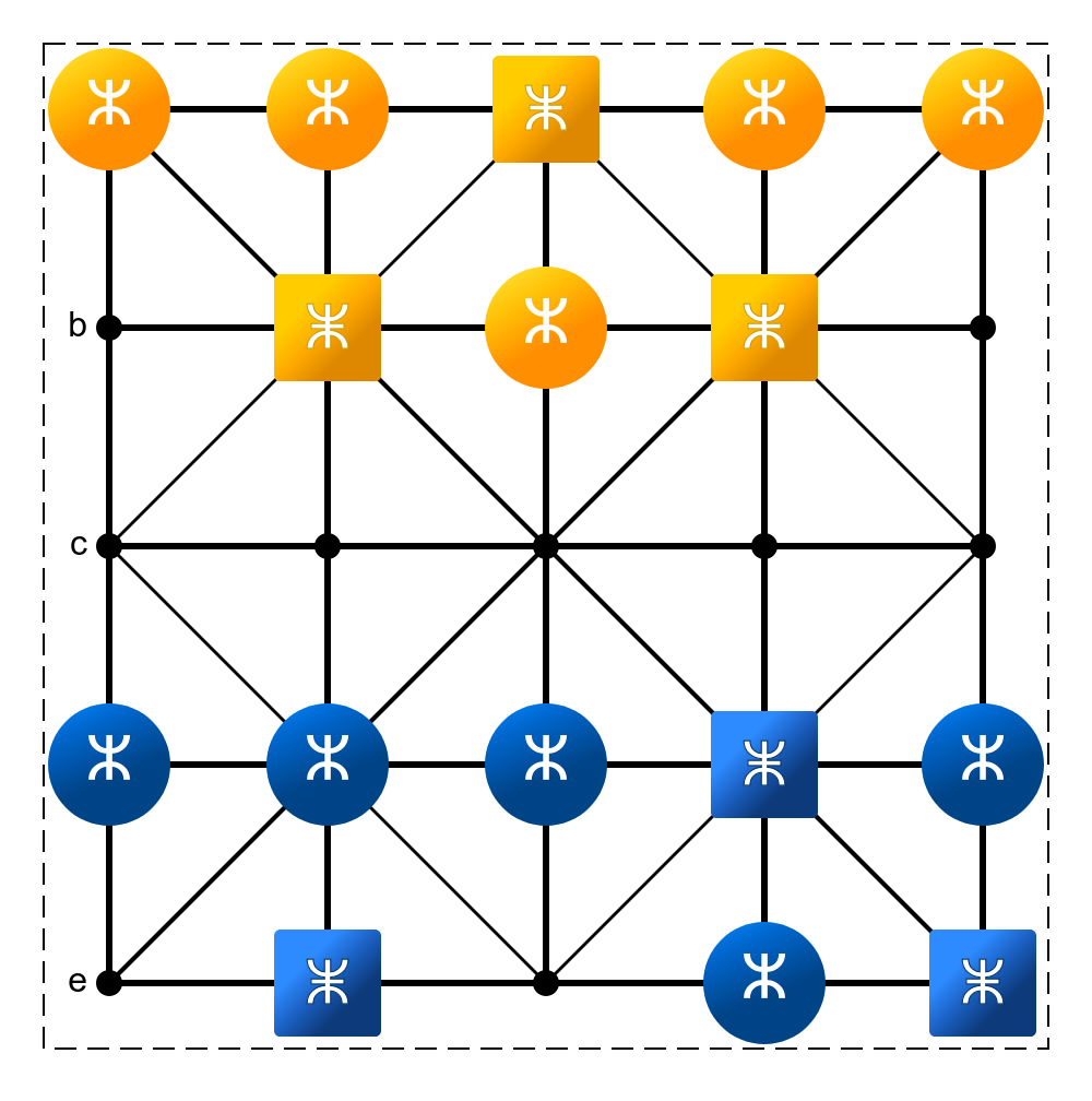 * Los guerreros pueden moverse (y capturar) en diagonal (↖️, ↗️, ↘️, ↙️) al próximo punto cercano. Si no fuera posible el movimiento en diagonal podrán deplazarse lateralmente (↔️) pero no capturar.