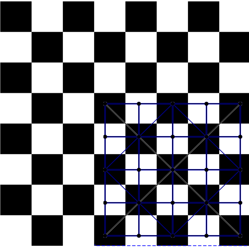 Representación del tablero de alquerque sobre un tablero de ajedrez