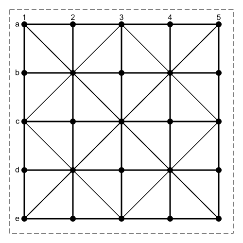 Hay 25 puntos en total en el tablero. 12 de ellos sirven par capturar en cruz y 13 en diagonal. (Ver figura 3)Figura 3